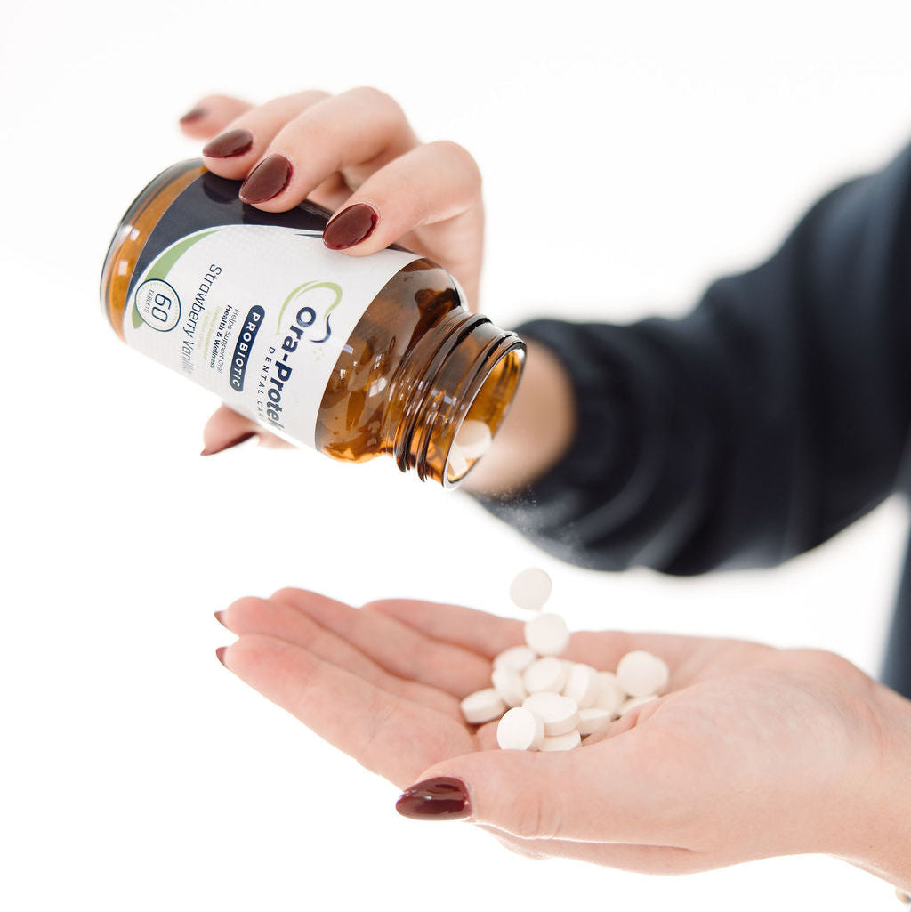 Ora-Protek Oral Probiotic Lozenges are loaded with 16 powerful probiotic strains and nourishing prebiotics to help keep your mouth feeling fresh and balanced. Developed by dentists, this daily lozenge supports a healthy oral environment—naturally.